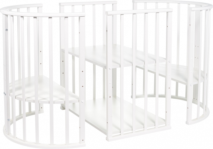 Кроватка трансформируется!!! Из нее можно сделать манеж, диванчик. Кстати, мне конфигурация с диванчиком очень понравилась. Спальное место новорожденной дочурки я оставляю в форме кроватки, а у спального места сына опускаю дно на более низкий уровень, раздвигаю перегородку и на получившемся диванчике мы устраиваемся с сыном вдвоем, играем, и дочка рядышком, под присмотром.